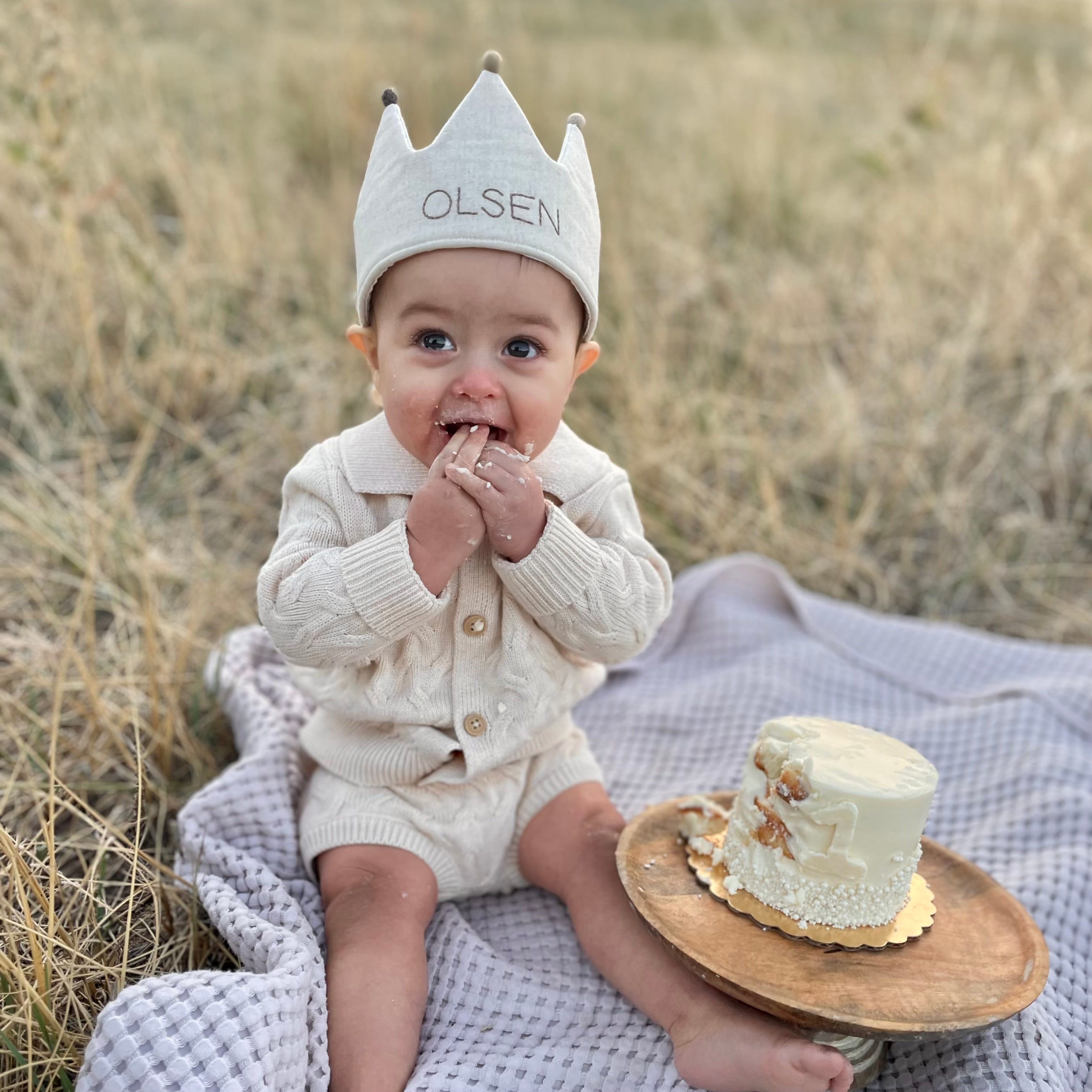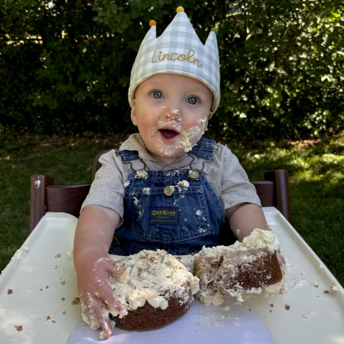 Absolutely love the crown I got for my son's 1st birthday! Lyndsi worked incredibly fast on the rushed order, and the crown exceeded all my expectations. The quality and durability are unmatched. I'm so excited for my son to wear his special crown every year as he grows up, it's the perfect tradition in the making.