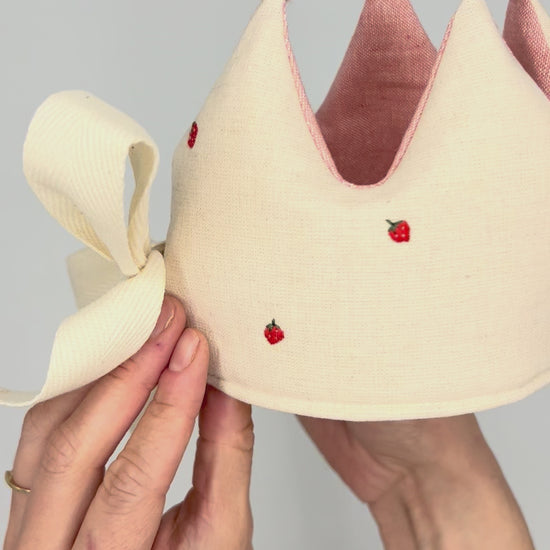 Enjoy the charm of teeny, tiny embroidery details of your choice — eight to nine delicate motifs, all hand stitched across the front of your crown. Each piece is slowmade in our studio with the same heirloom quality you know and love.
