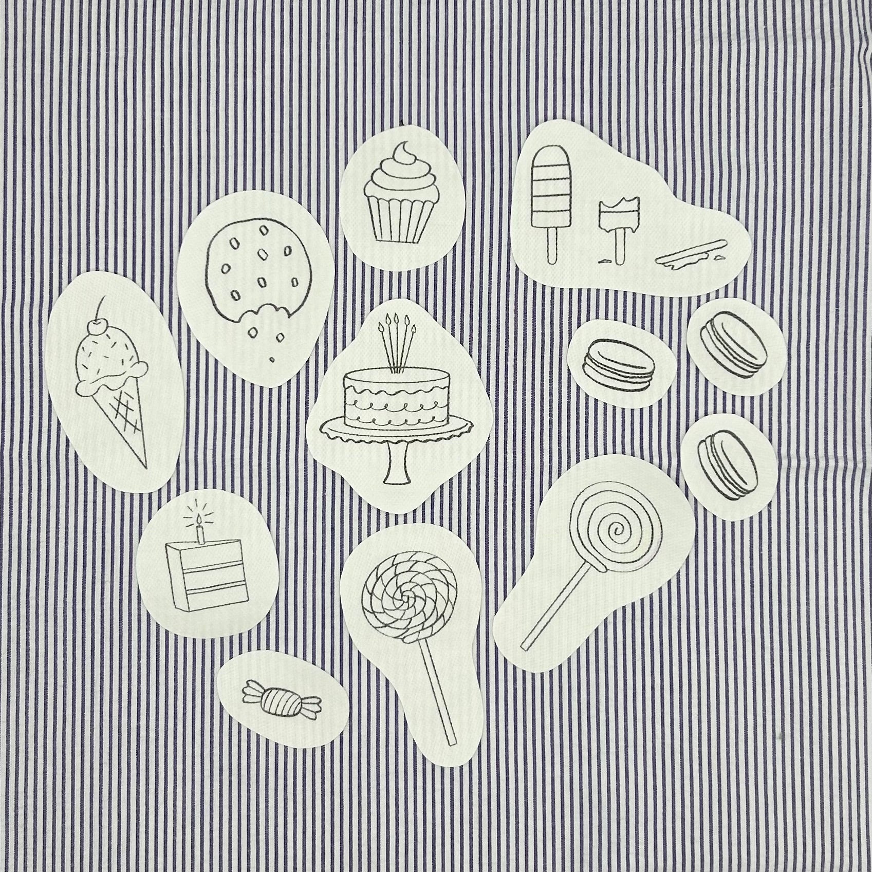 Bring a little sugar to your stitching... Our Sweet Tooth pack includes 12 original, hand-drawn designs full of candy shop charm. Just stick the water-soluble fabric to your project, stitch as usual, and rinse away when you’re done. No tracing and no guesswork—just sweet, simple magic.