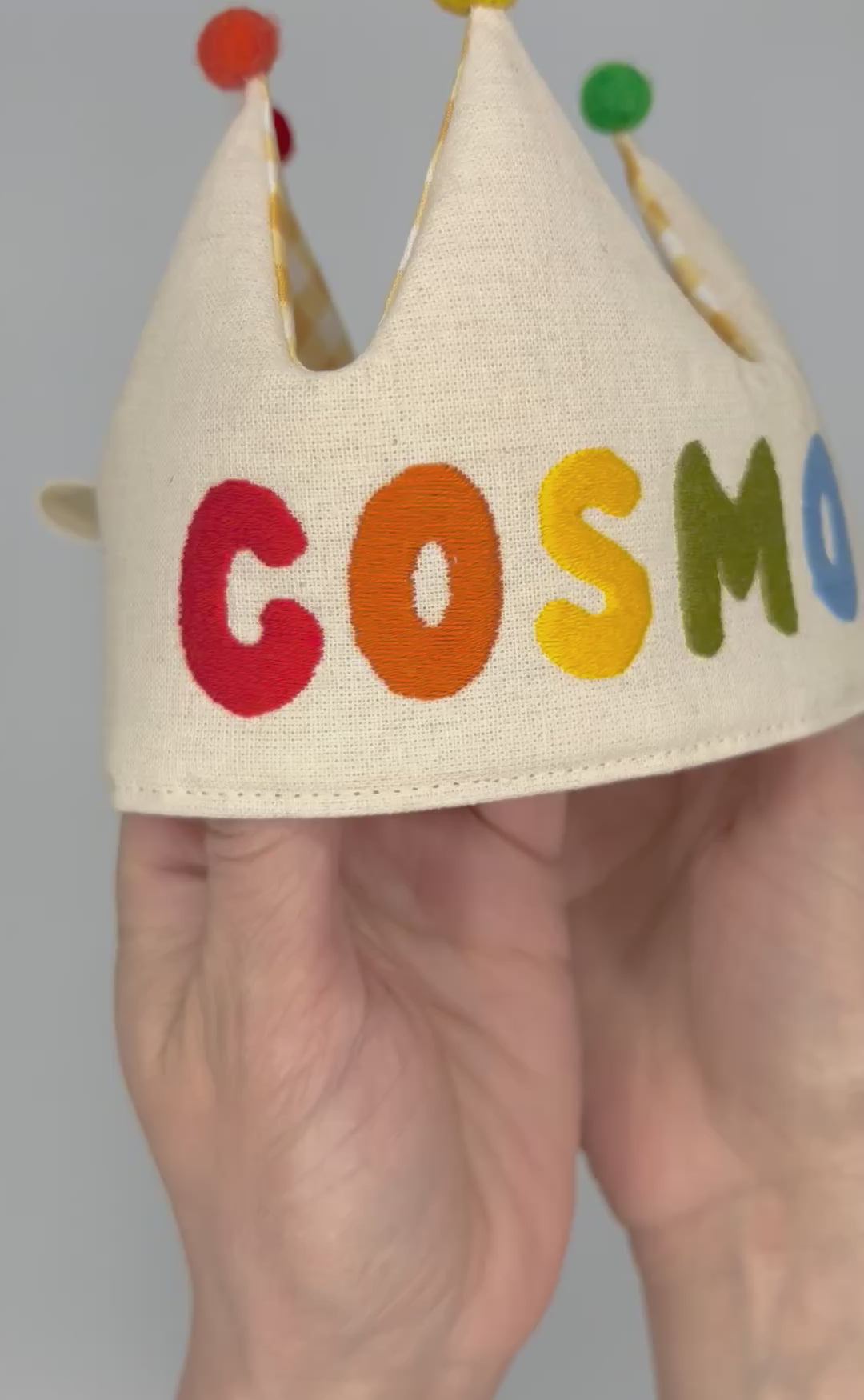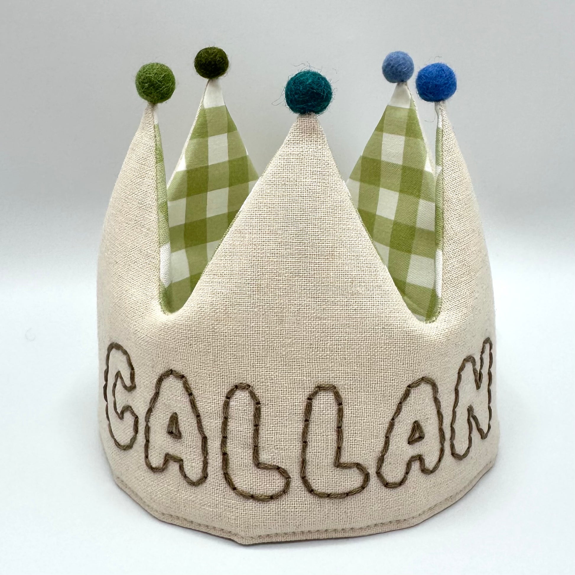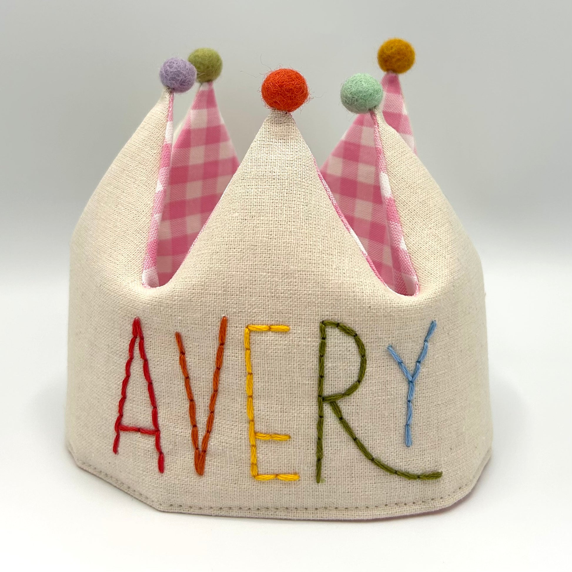 One size, fits infant to adult. Crown has adjustable cotton ties and comes with a bag for safe storage. This is not a toy - please use under adult supervision. Personalized/embroidered items are not eligible for returns or exchanges and we strongly recommend using Signature Required Delivery. Read full shop policies here.