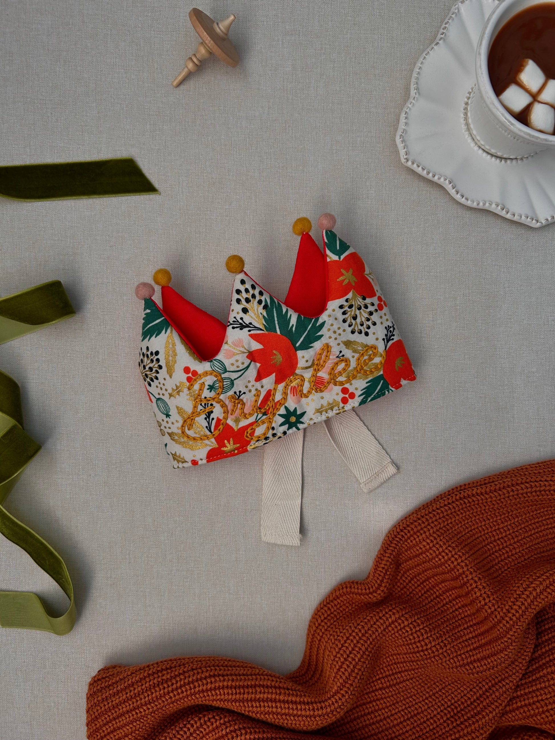 One size, fits infant to adult. Crown has adjustable cotton ties and comes with a bag for safe storage. This is not a toy - please use under adult supervision. Personalized/embroidered items are not eligible for returns or exchanges and we strongly recommend using Signature Required Delivery. Read full shop policies here. Visit our All You Need To Know page answers our most-asked client inquiries.